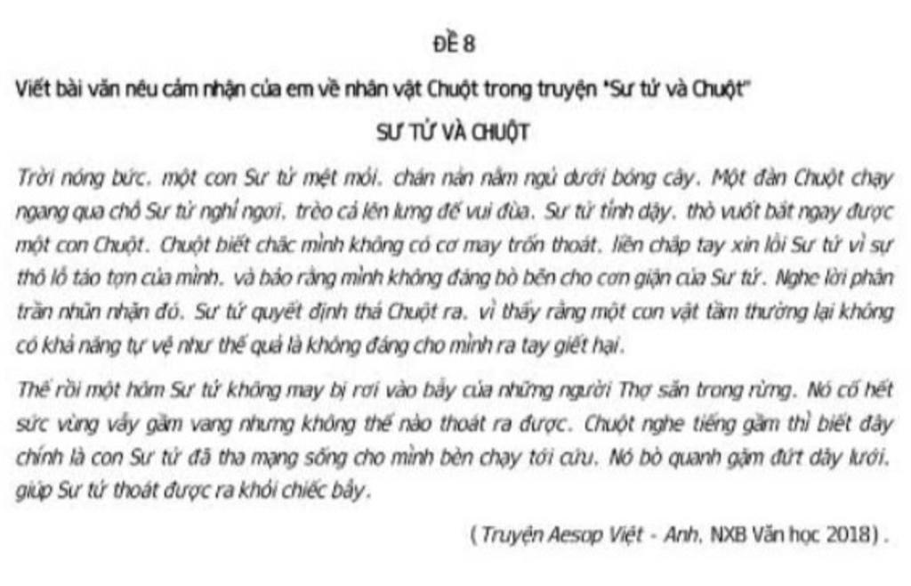 Trong thế giới truyện ngụ ngôn đầy ý nghĩa, " Sư tử và Chuột " của Aesop là một câu chuyện giản dị nhưng sâu sắc về lòng biết ơn và sự giúp đỡ lẫn nhau. Nhân vật Chuột trong câu chuyện đã để lại trong em nhiều ấn tượng sâu sắc.