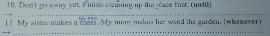 `11,`Whenever my sister makes a mess, my mum makes her weed the garden.