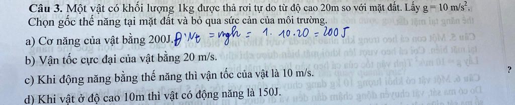 `a) W=W_(tmax)=mgh=1.10.20=200(J)->(Đ)`