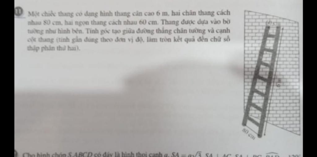 Góc tạo bởi đường thẳng chân tường và cạnh cột thang là cosCAF = $\frac{0,1}{6}$ =$89,05^{o}$