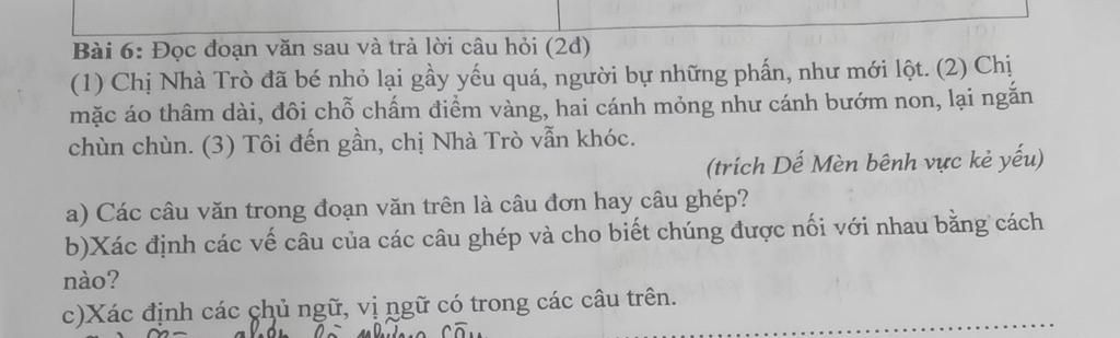 `-` Vế `1` : Chị Nhà Trò đã bé nhỏ lại gầy yếu quá