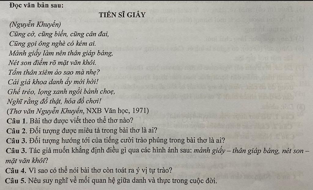 Câu 2: Đối tượng được miêu tả trong bài thơ là ông tiến sĩ giấy- tầng lớp hư danh trong xã hội phong kiến đương thời