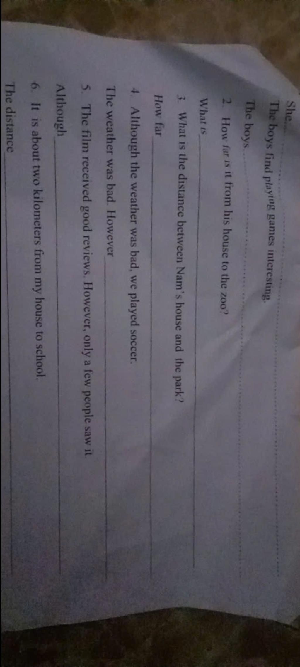 `6,` The distance from my house to school is about two kilometers.