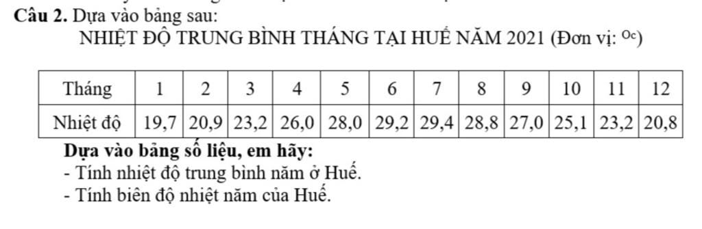 Công thức tính biên độ nhiệt: tháng cao nhất trừ tháng thấp nhất