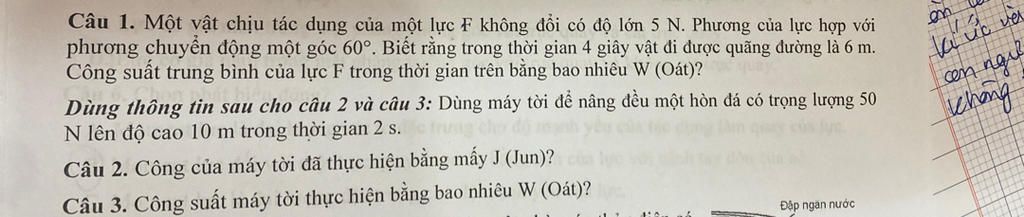 `mathcalP = A/t = [F s cos alpha]/t = [5.6.cos60^o]/4 = 3,75 (W)`