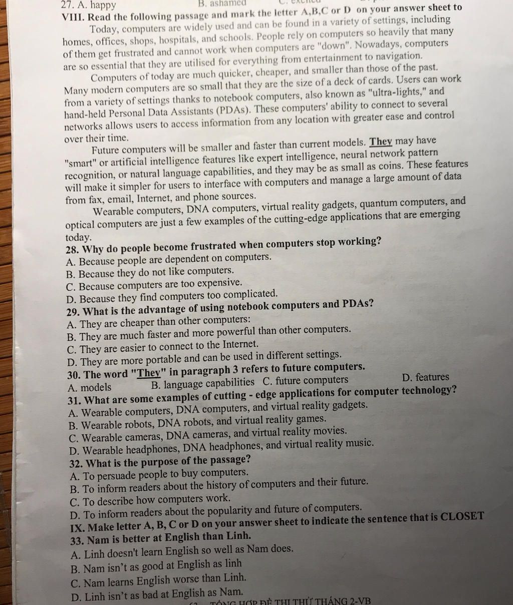 VIII. Read the following passage and mark the letter A,B,C or D on your answer sheet to
