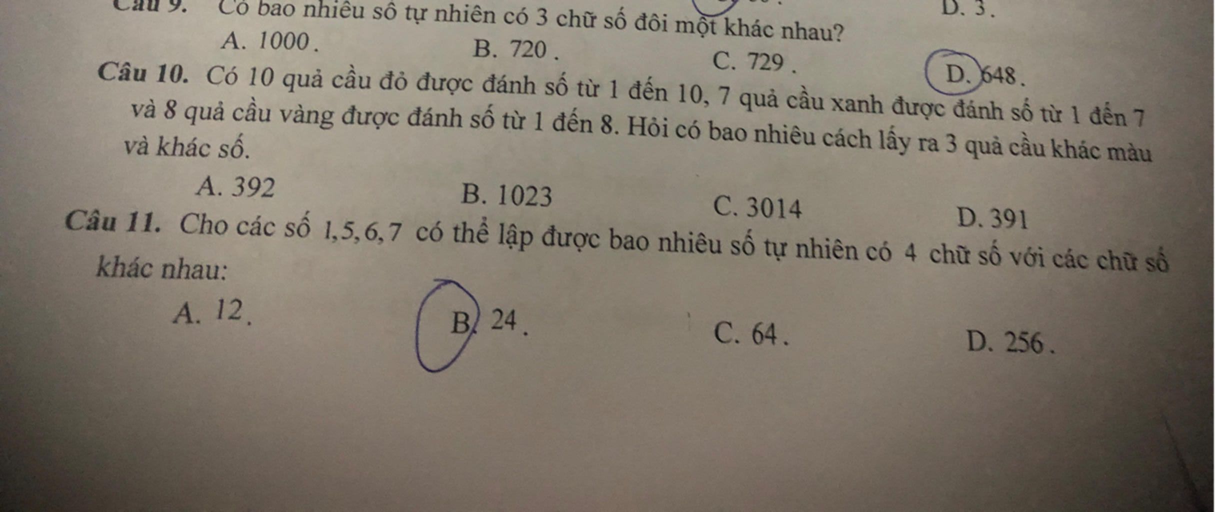 $\to$Có tất cả $7\cdot 7\cdot 8=392$ cách lấy $3$ quả cầu khác màu và khác số