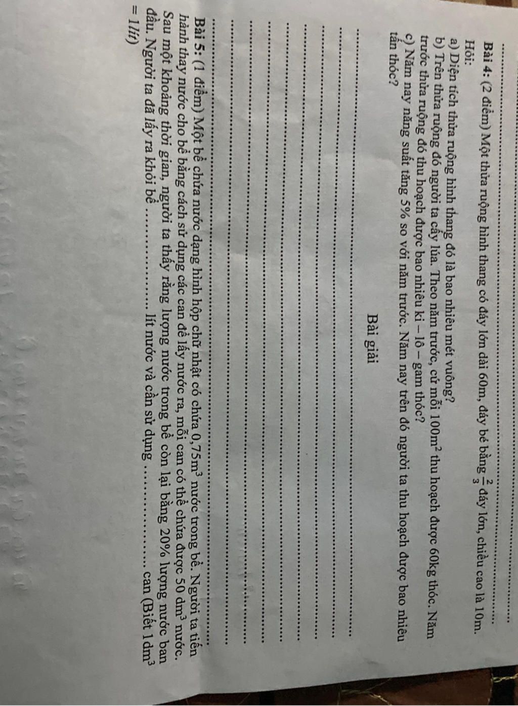 Người ta đã lấy ra khỏi bể số lít nước là `:`
