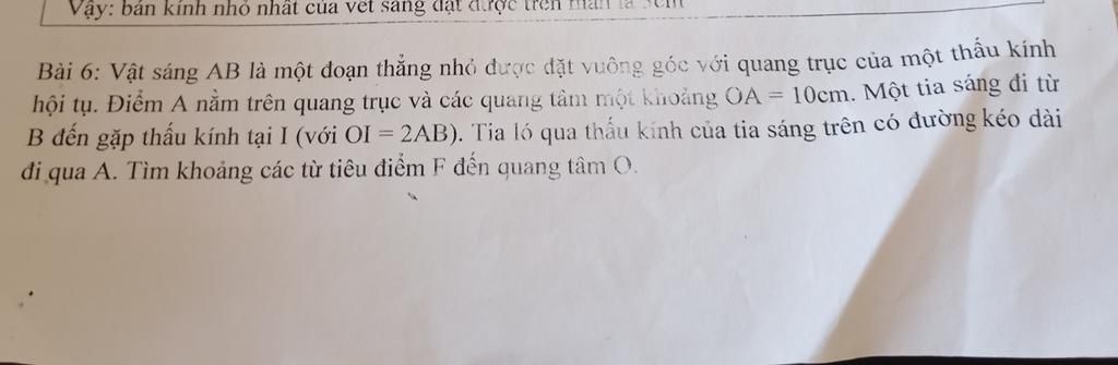 Bài 6: Vật sáng AB là một đoạn thẳng nhỏ được đặt vuông góc với quang trục của một thấu kính