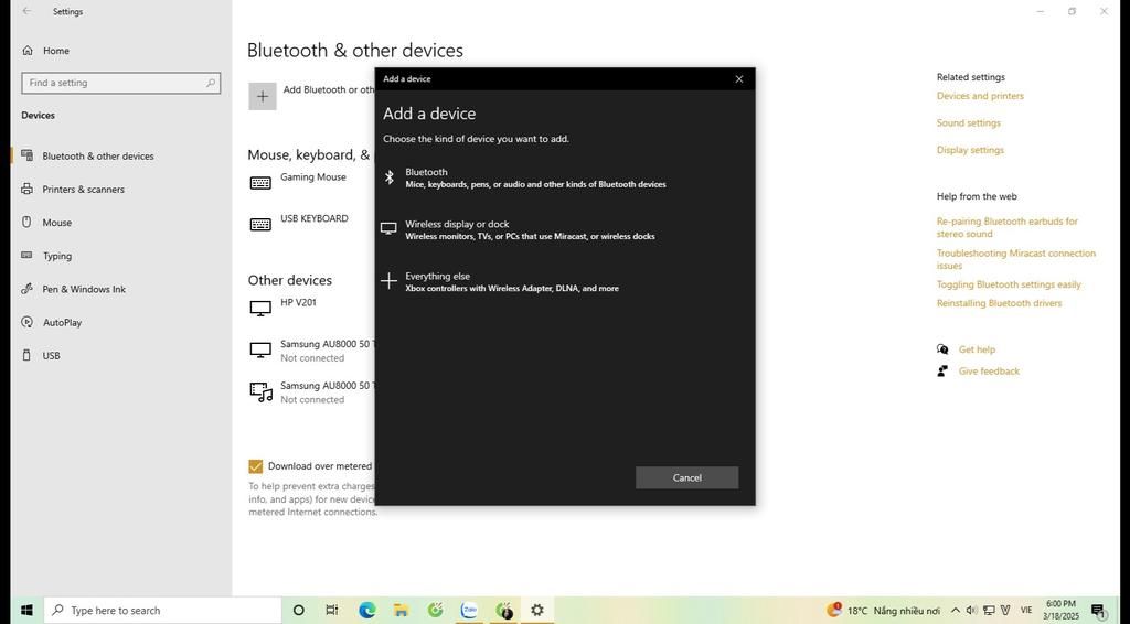 - Chọn "Add Bluetooth or other device" -> Bluetooth