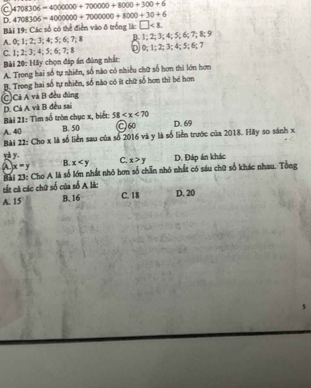 Câu 23 : số chẵn nhỏ nhất có 6 chữ số khác nhau là : `102345`