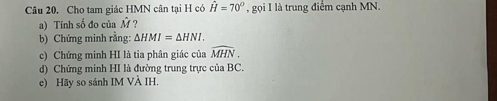 b) xét tam giác HMI và tam giác HNI, ta có