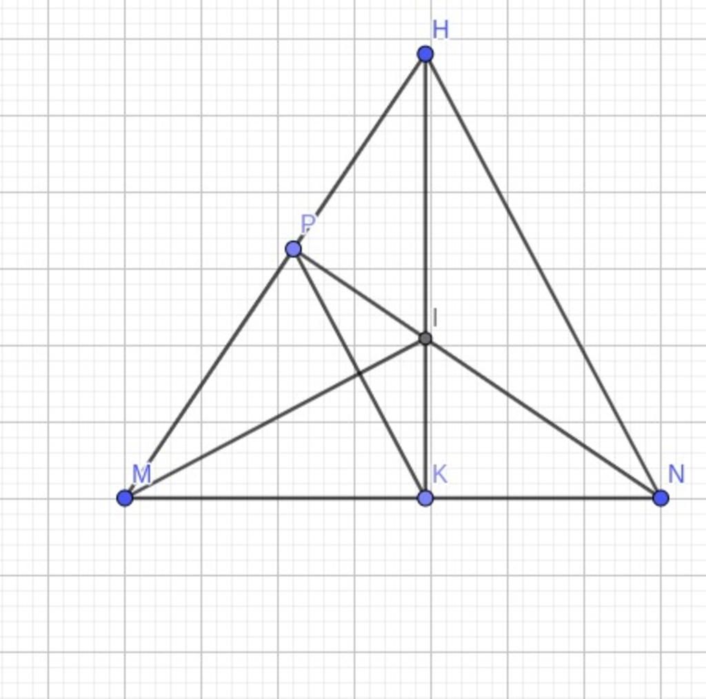 c) tia KI cắt tia MP tại H . Chứng mình tam giác NMH là tâm giác cân