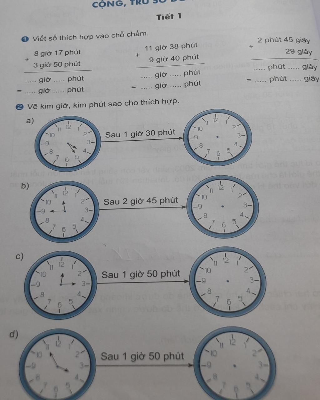 c) 2 phút 45 giây + 29 giây = 2 phút 74 giây = 3 phút 14 giây