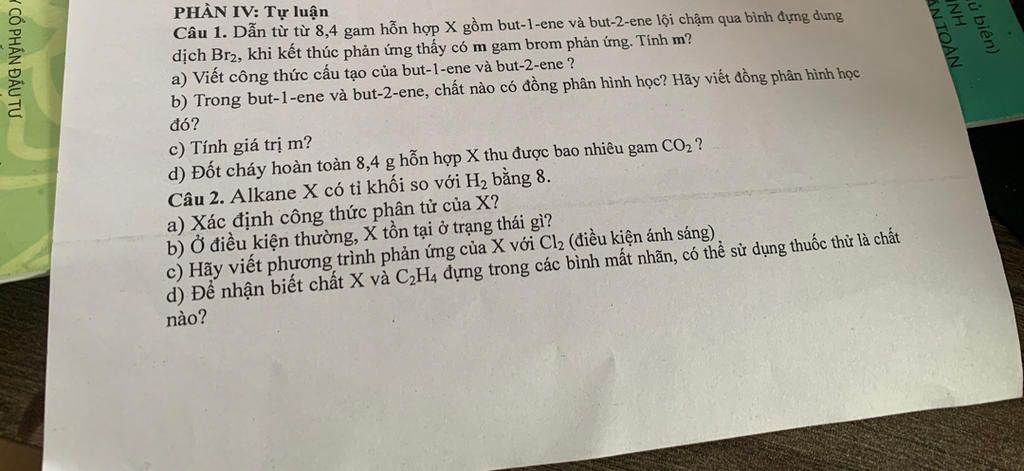 `c)\ CH_4+Cl_2`$\xrightarrow{Ánh \ sáng}$`CH_3Cl+HCl`