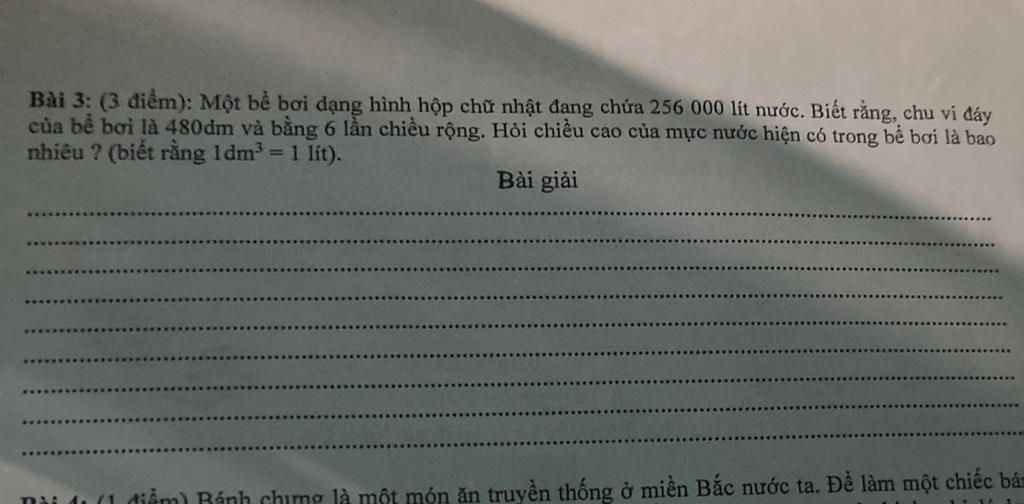 Chiều cao của mực nước hiện có trong bể bơi là :