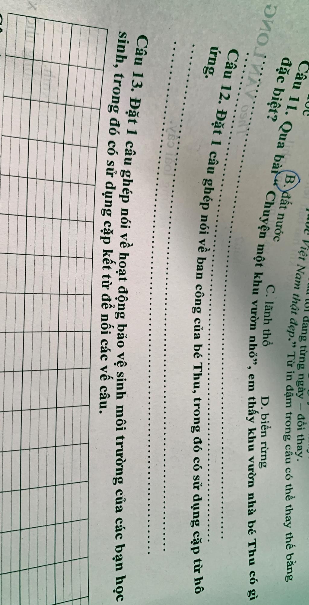 `11.` Qua bài "Chuyện một khu vườn nhỏ" , em thấy khu vườn nhà bé Thu có điểm đặc biệt là :