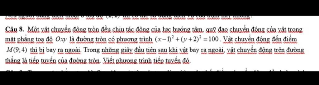 Câu 8. Một vật chuyển động tròn đều chịu tác động của lực hướng tâm, quỹ đạo chuyển động của vật trong