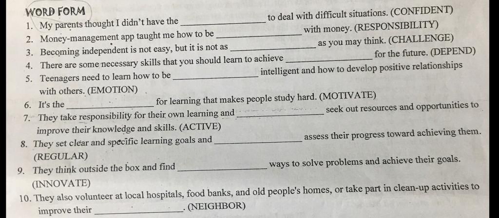 +) "Challenging" là tính từ của "challenge" (danh từ). Ở đây cần một tính từ để mô tả mức độ khó khăn của việc trở nên độc lập.