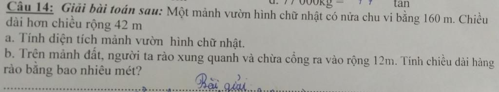 a) Chiều dài mảnh vườn là :