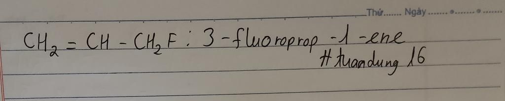 Tên gọi theo danh pháp thay thế của dẫn xuất halogen có công thức cấu tạo CH2=CH–CH2F là