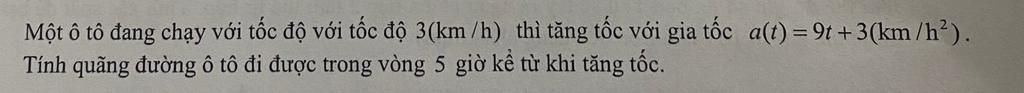 Quãng đường ô tô đi được trong vòng $5$ giờ kể từ khi tăng tốc là: