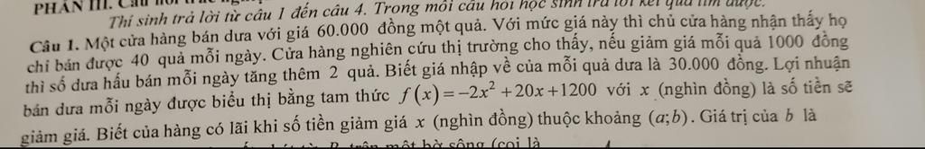 Câu 1. Một cửa hàng bán dưa với giá 60.000 đồng một quả. Với mức giá này thì chủ cửa hàng nhận thấy họ