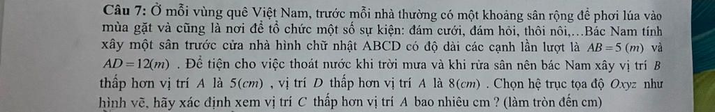 Câu 7: Ở mỗi vùng quê Việt Nam, trước mỗi nhà thường có một khoảng sân rộng để phơi lúa vào