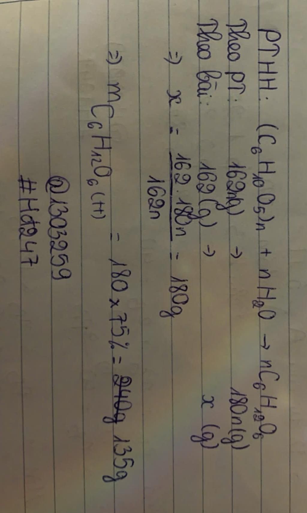 14). Thủy phân 162 gam tinh bột với hiệu suất của phản ứng đạt 75%, Tính khối lượng glucose thu