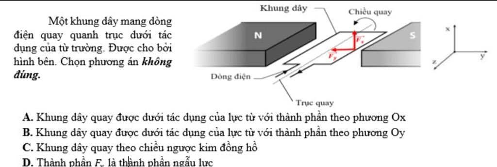 A. Khung dây quay được dưới tác dụng của lực từ với thành phần theo phương Ox