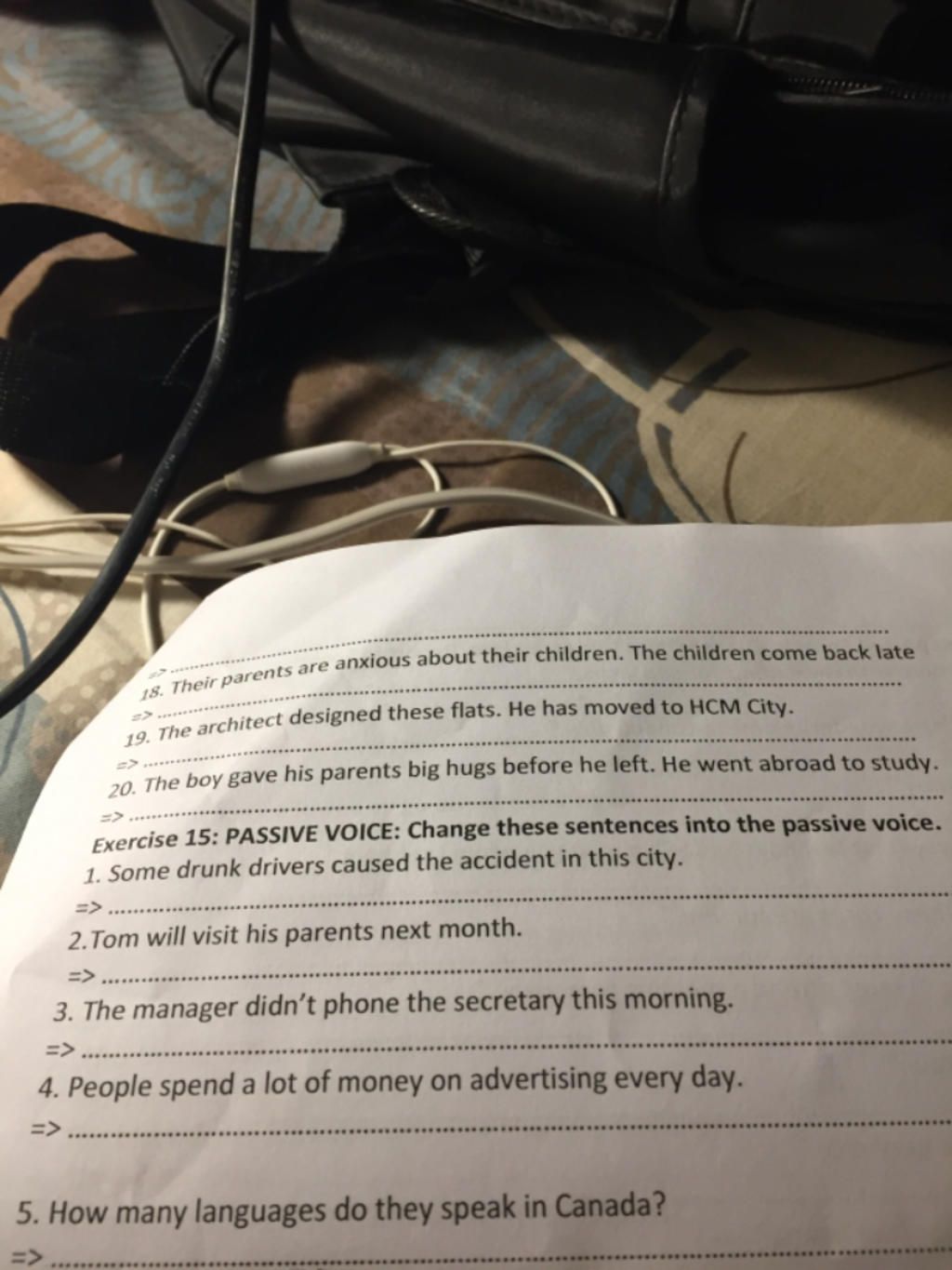 Exercise 15: PASSIVE VOICE: Change these sentences into the ...