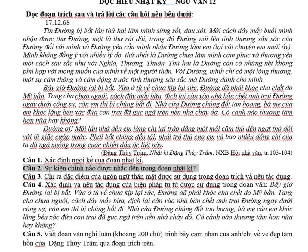 Đọc đoạn trích sau và trả lời các câu hỏi nêu bên dưới: