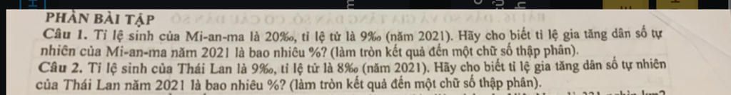 Tỷ lệ gia tăng dân số tự nhiên của Myanmar năm 2021: 11,0%