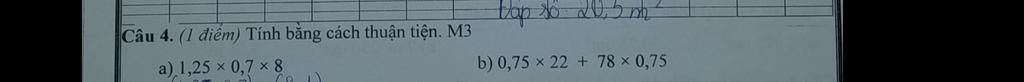 `b)` `0,75 xx 22 + 78 xx 0,75`