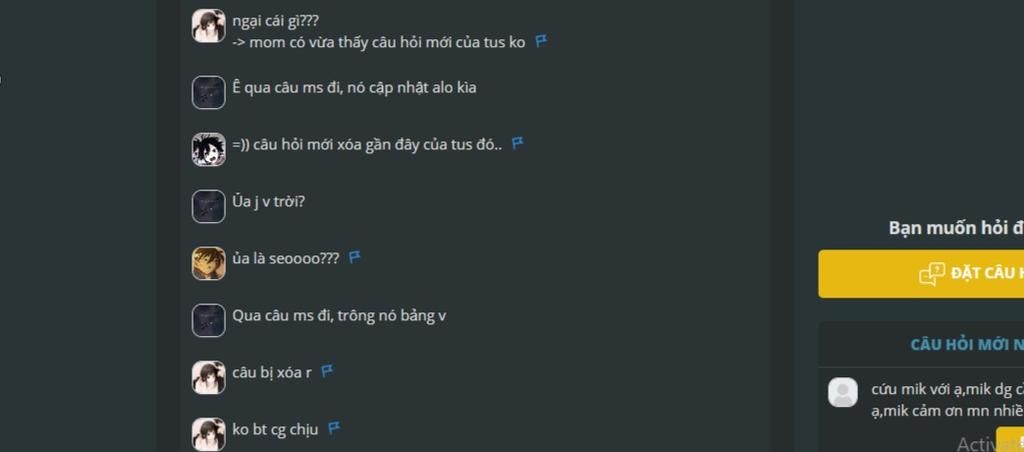 -> mom có vừa thấy câu hỏi mới của tus ko F