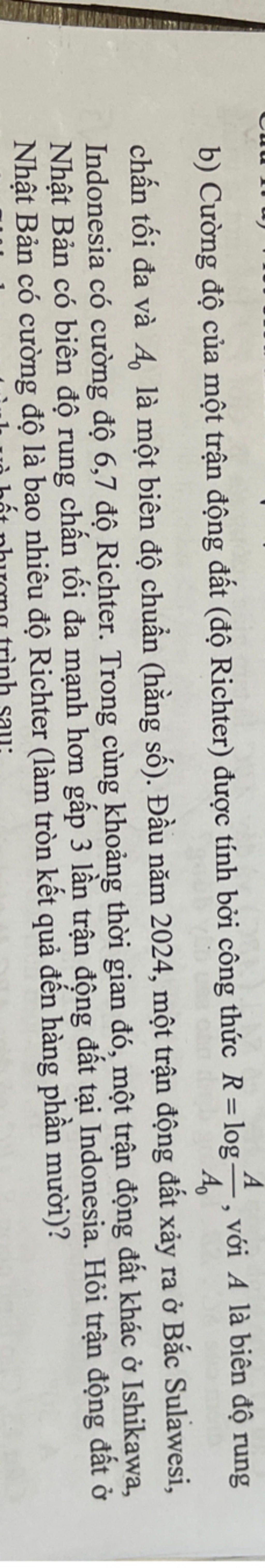 trận động đất ở nhật bản có biên độ mạnh gấp `3` lần trận động đất ở indonesia