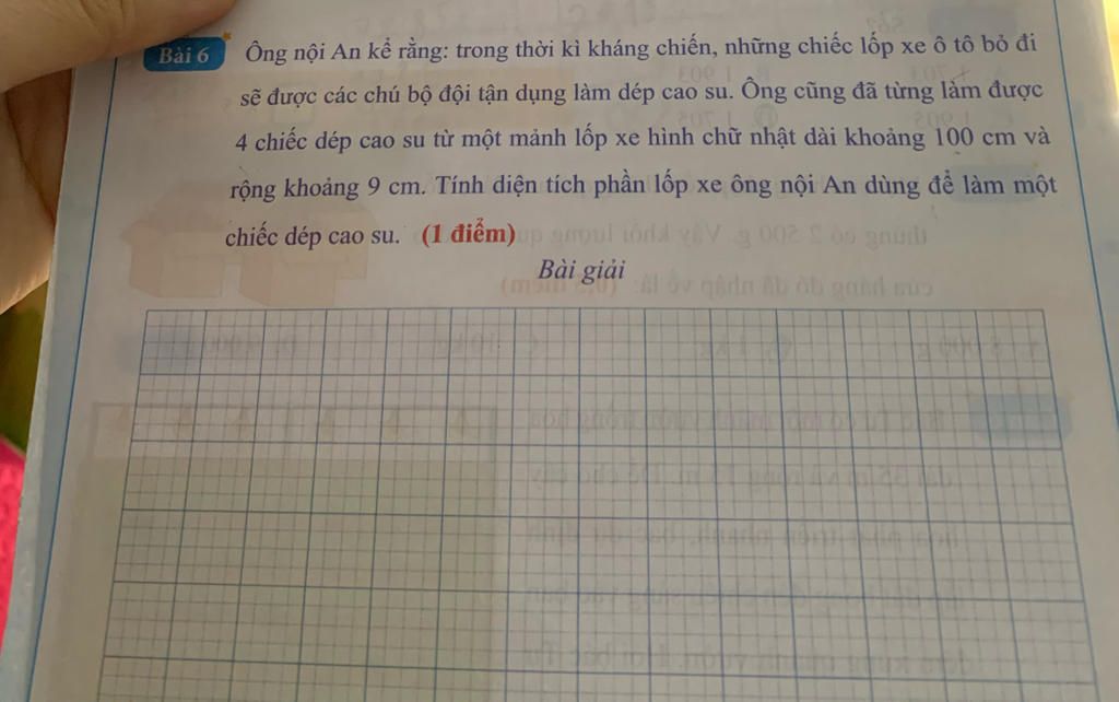 Diện tích phần lốp xe ông nội An dùng để làm một chiếc dép cao su là