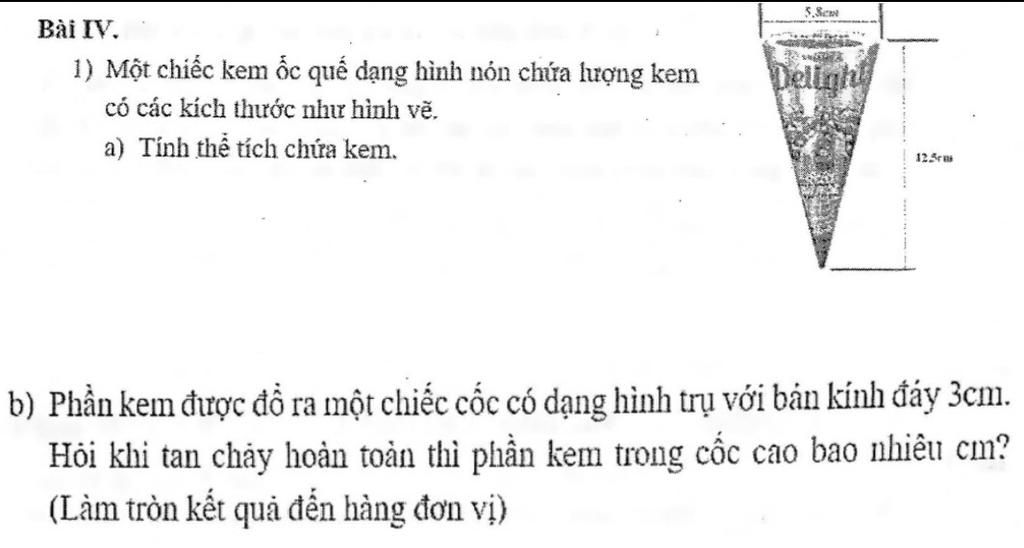 Vậy khi tan chảy kem trong cốc cao $12cm.$