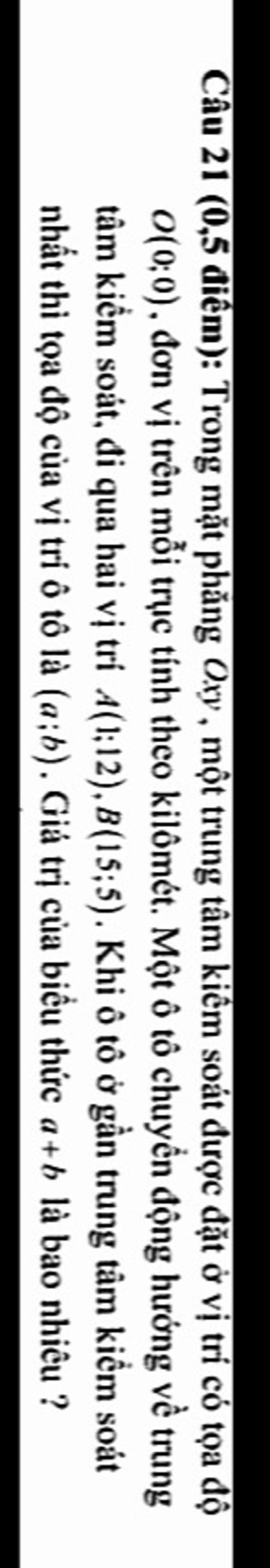 Gọi $C(a; b)$ là vị trí ô tô gần trung tâm kiểm soát nhất