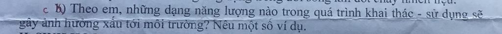 Một số dạng năng lượng gây ảnh hưởng xấu đến môi trường trong quá trình khai thác và sử dụng bao gồm: