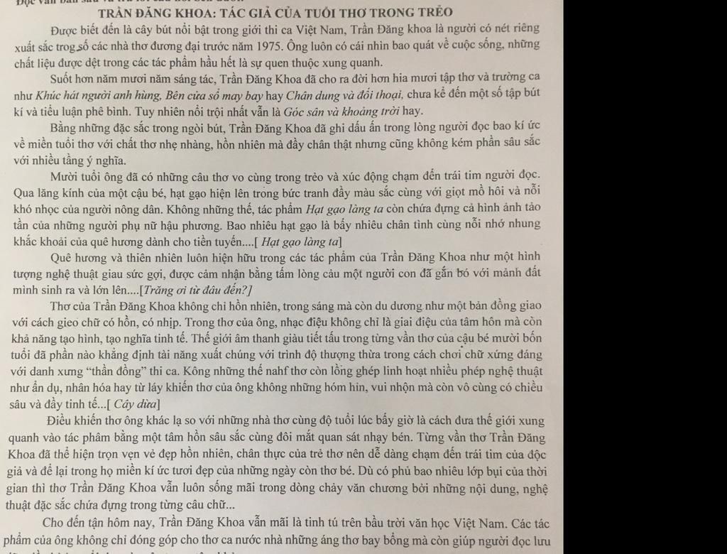 `+` So với nhiều nhà thơ cùng thời, Trần Đăng Khoa có cách nhìn độc đáo về thế giới xung quanh và diễn đạt một cách nhạy bén.