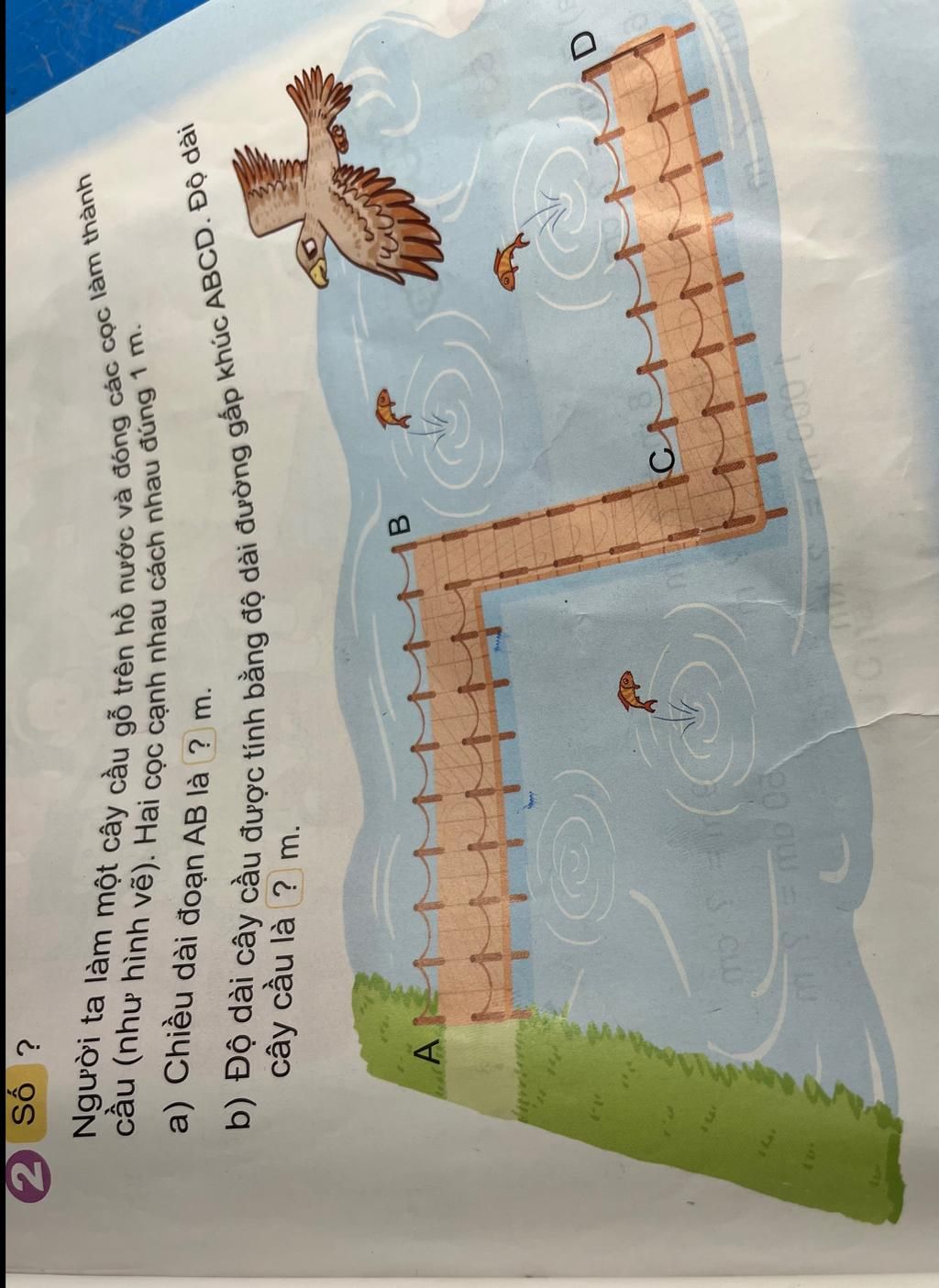`a)` Từ A đến B có khoảng cách là 9 cọc nên :