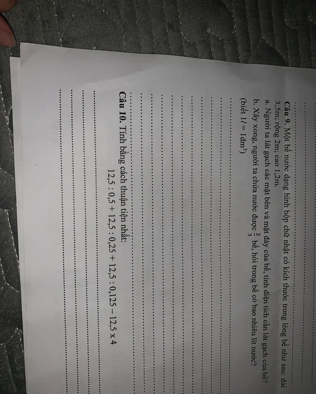 - Đổi ` 5,6 m^3 = 5600 dm^3 `