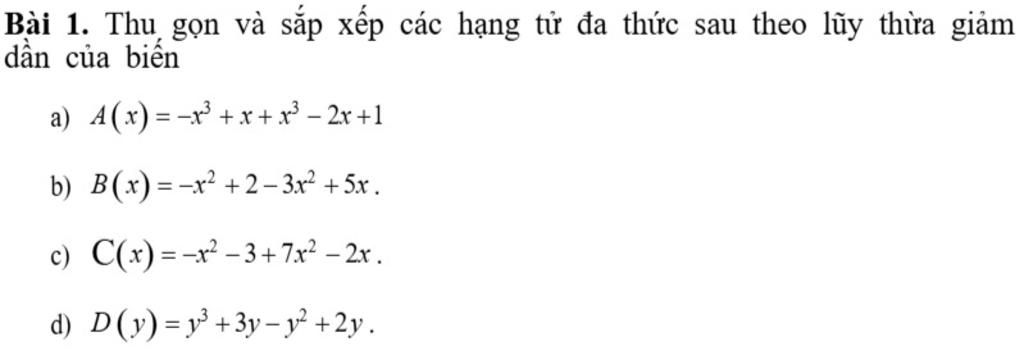 `A(x)=(-x^3+x^3)+(x-2x)+1`