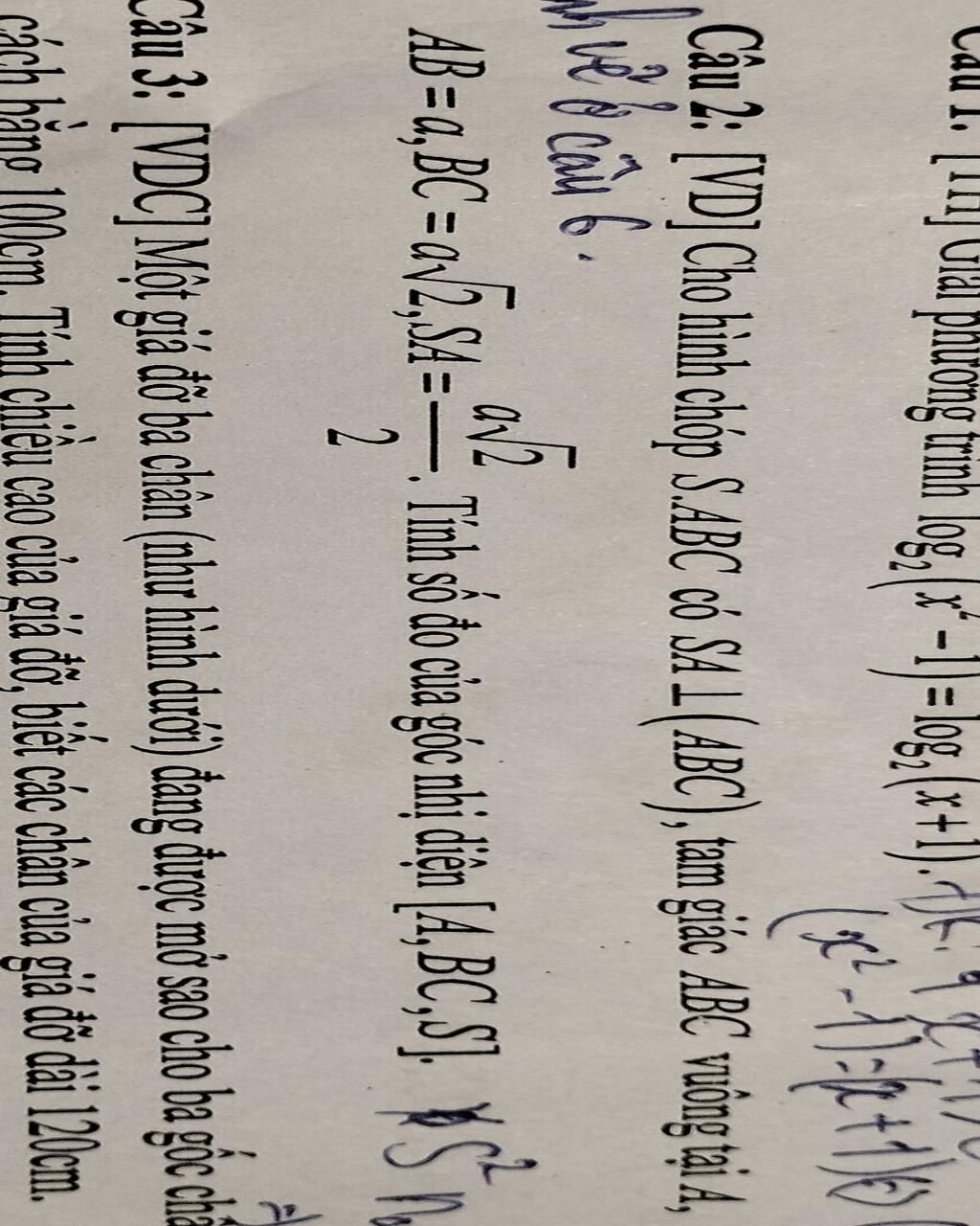 Câu 3: (VDC] Một giá đỡ ba chân (như hình dưới) đang được mở sao cho ba gốc chế