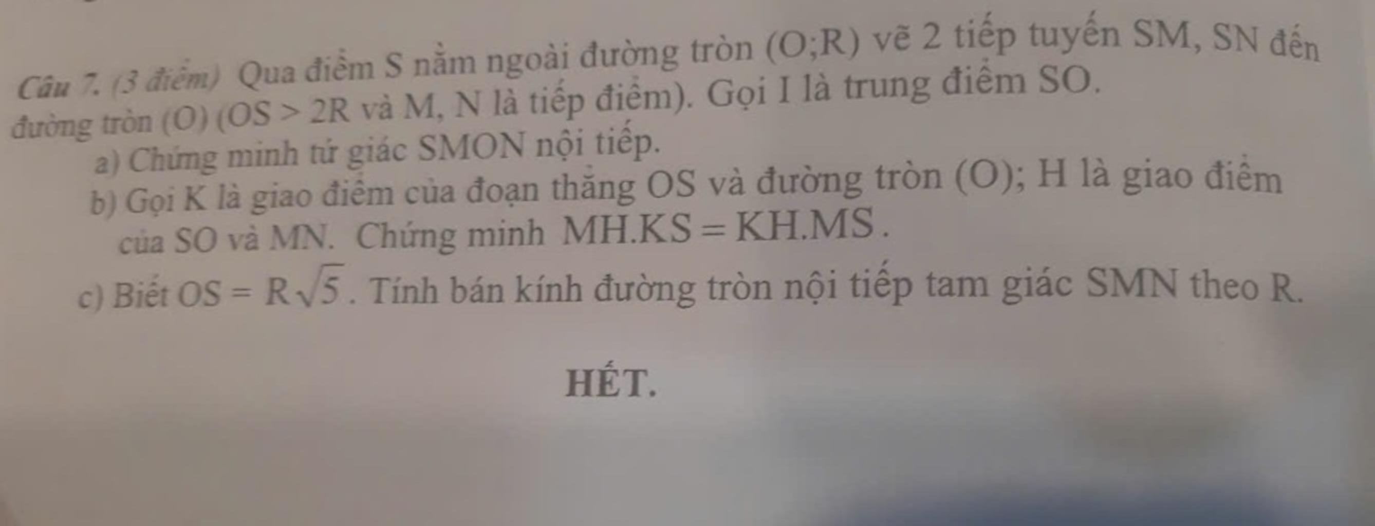 b.Vì $SM, SN$ là tiếp tuyến của $(O)$