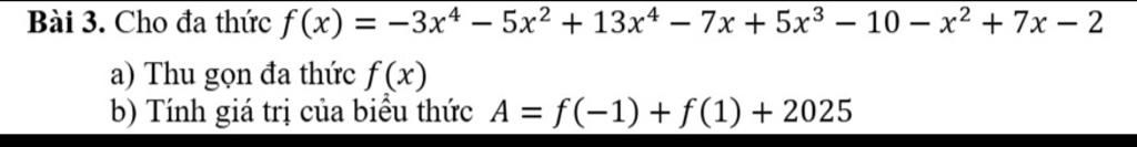 `f(x) = -3x^4 - 5x^2 + 13x^4 - 7x + 5x^3 - 10 - x^2 + 7x - 2`