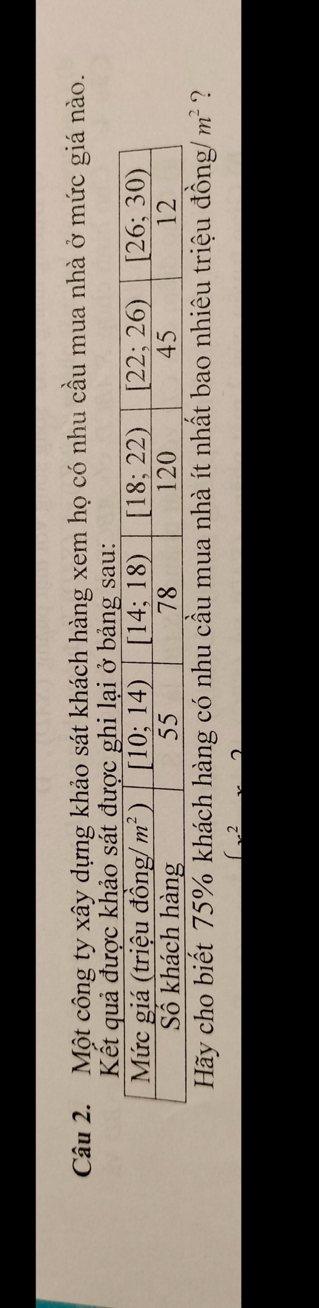 Vậy 75% khách hàng có nhu cầu mua nhà ít nhất 18 triệu đồng/m².