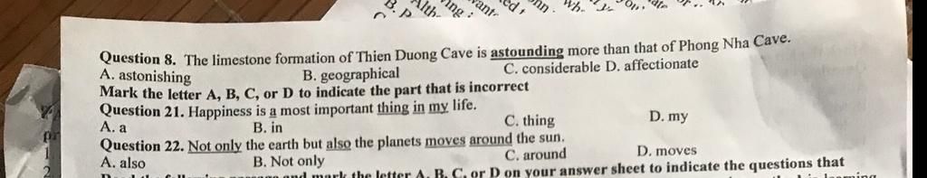 Mark the letter A , B , C or D to indicate the part that is incorrect :