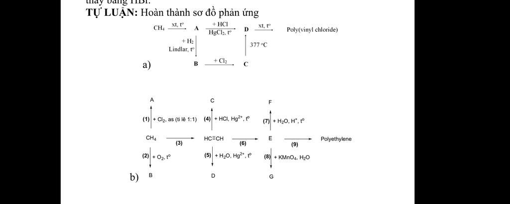 1. CH4 (1500 độ, LLN) -> CH≡CH (A)